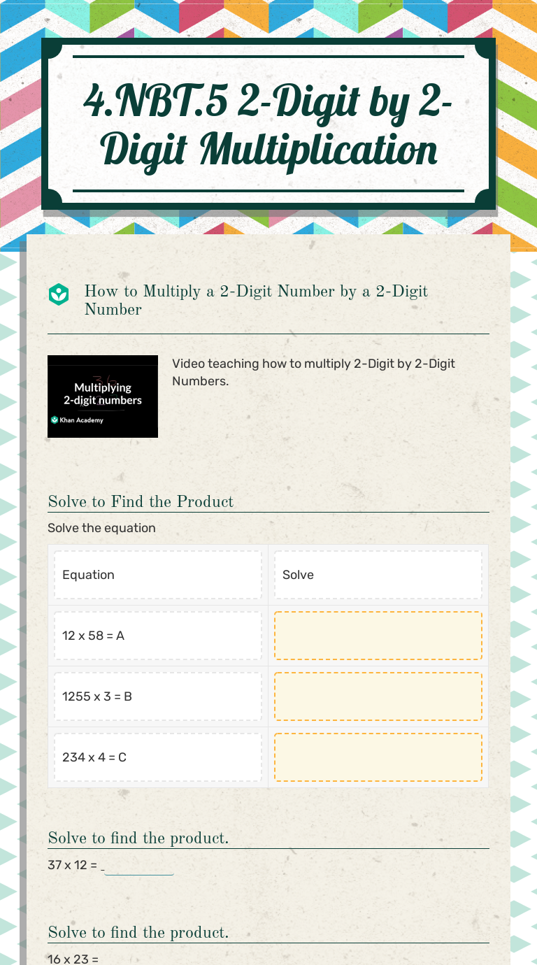 Web Download And Print 4.Nbt.b.5 Worksheets To Help Kids Develop This Key Fourth Grade Common Core Math Skill.