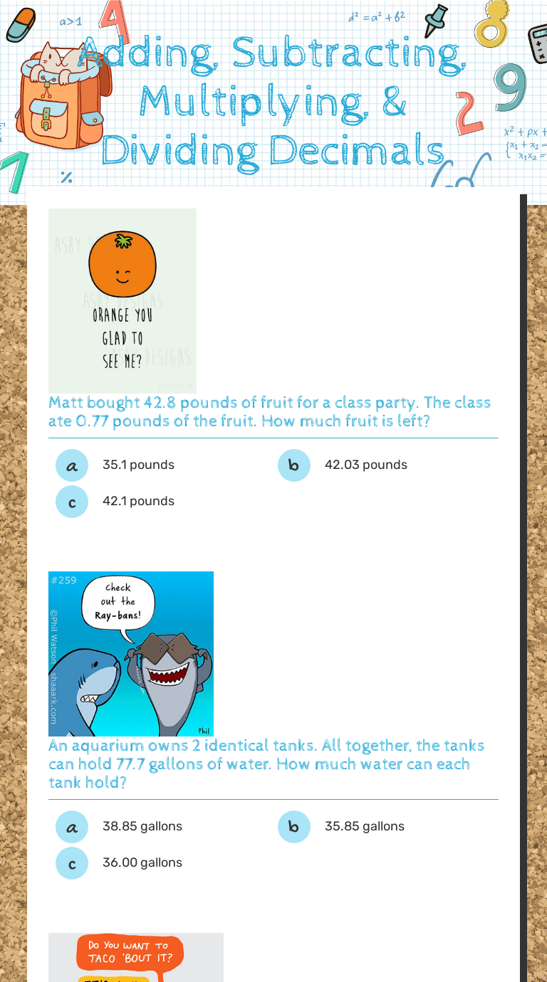 Adding, Subtracting, Multiplying, & Dividing Decimals Interactive