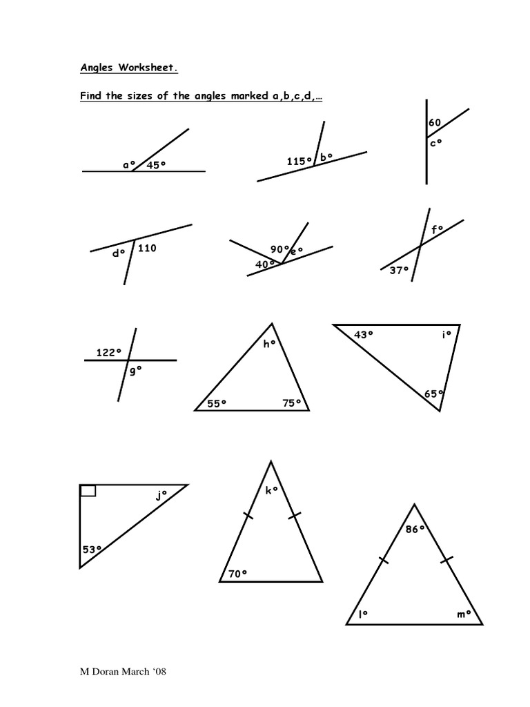 Geometry Worksheets Angles Worksheets for Practice and Study