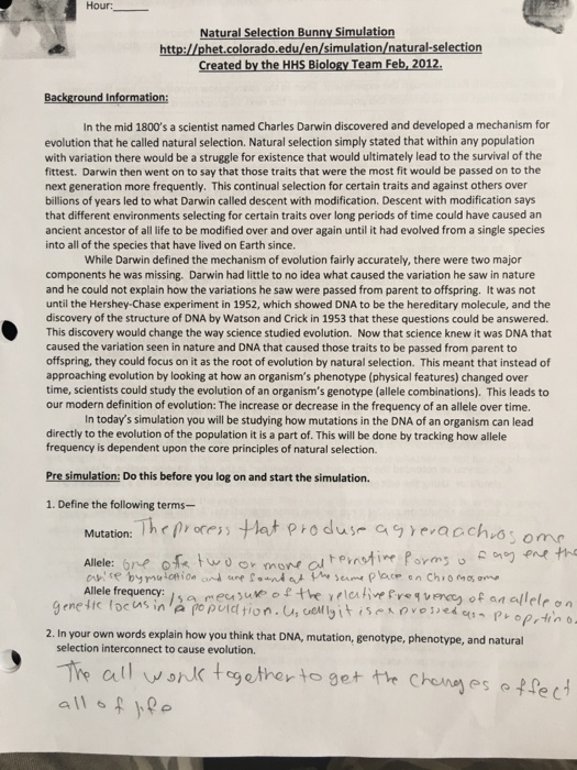 Natural Selection Simulation At Phet Worksheet Answers
