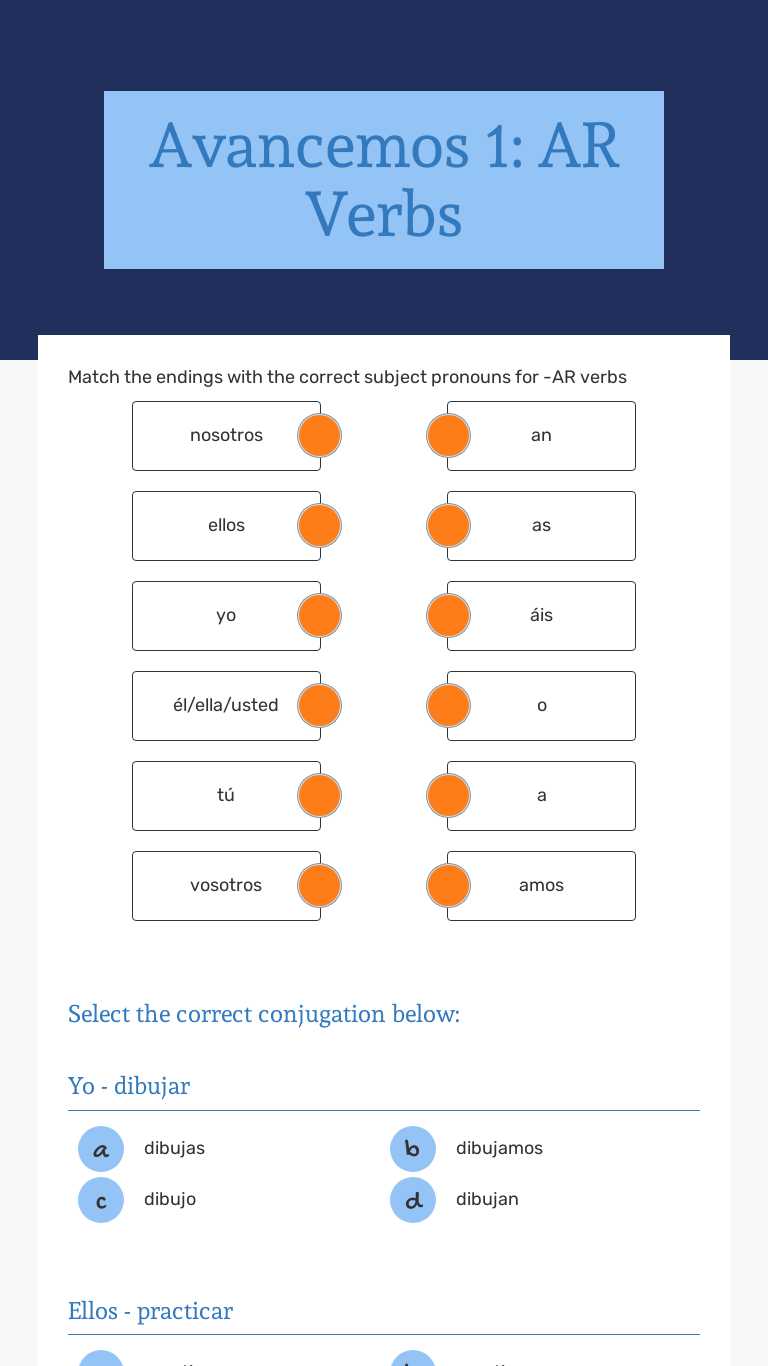 Avancemos 1 AR Verbs Interactive Worksheet by Brianna Simmons Wizer.me