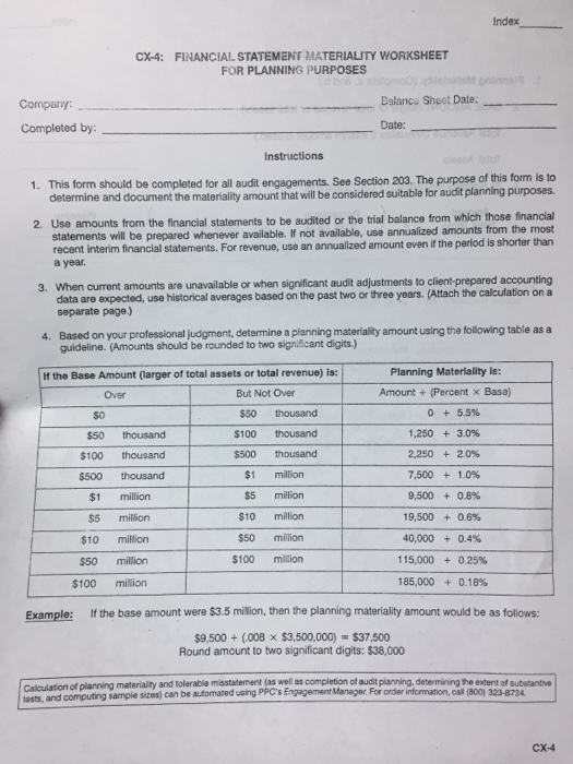 Index CX4 FINANCIAL STATEMENT MATERIALITY WORKSHEET
