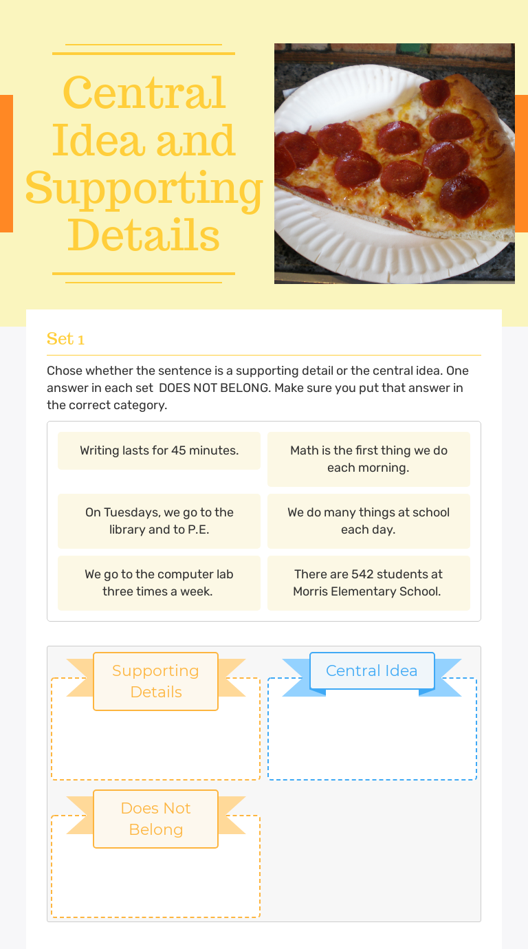 Central Idea and Supporting Details Interactive Worksheet by Alia