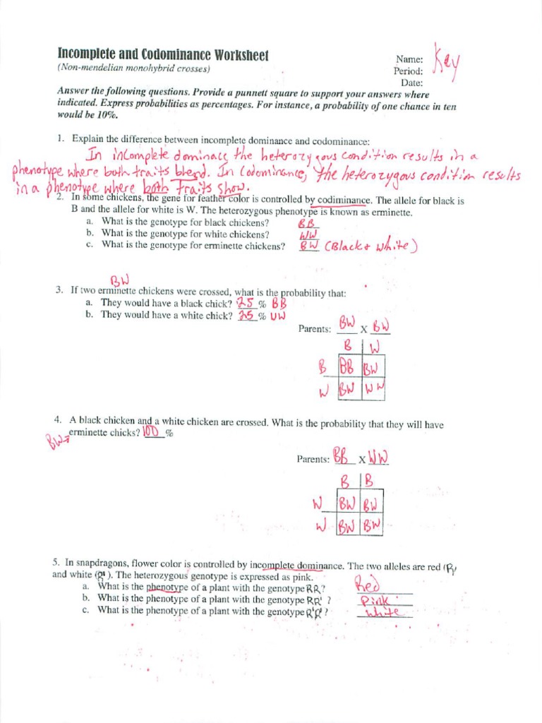 Web Codominant Incomplete Dominance Practice Worksheet Answer Key 2 → Walthery.net.