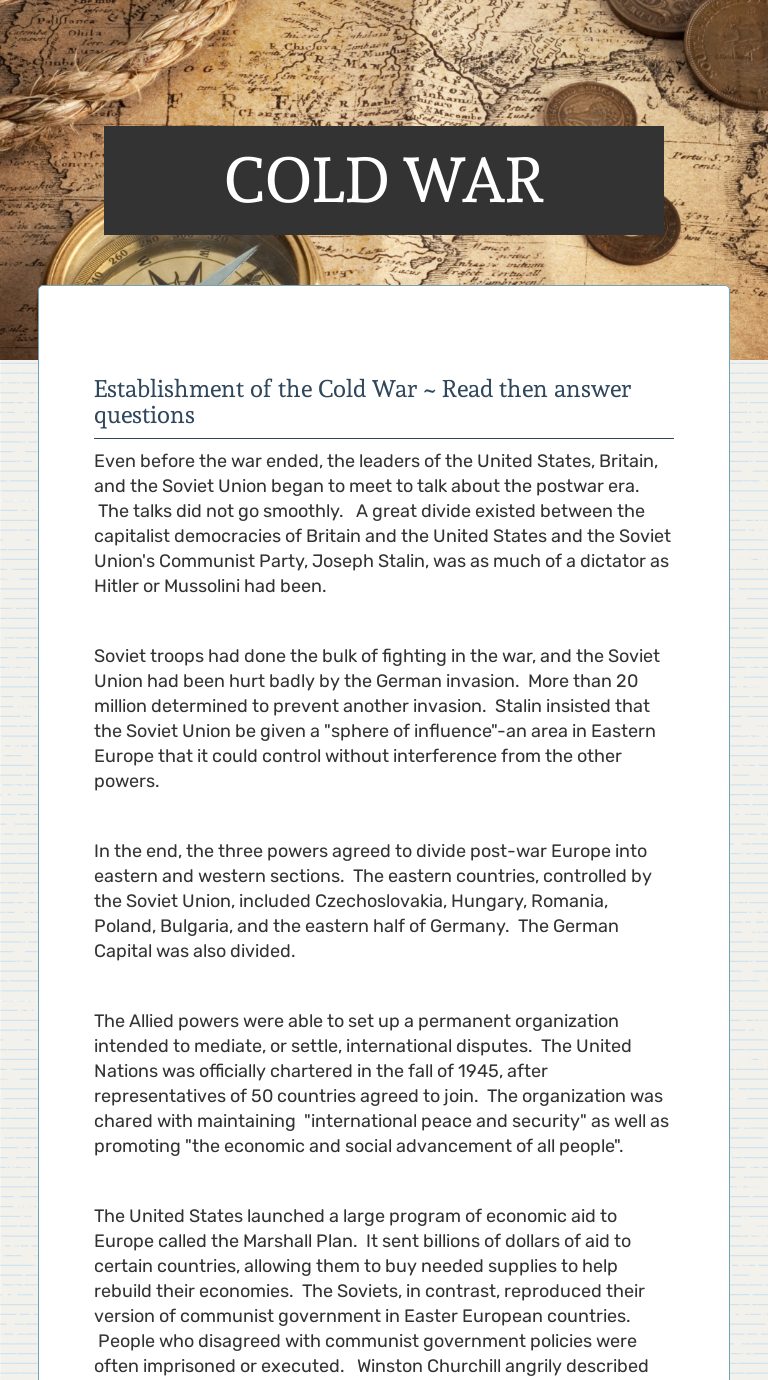 COLD WAR Interactive Worksheet by Wendy Luck Wizer.me