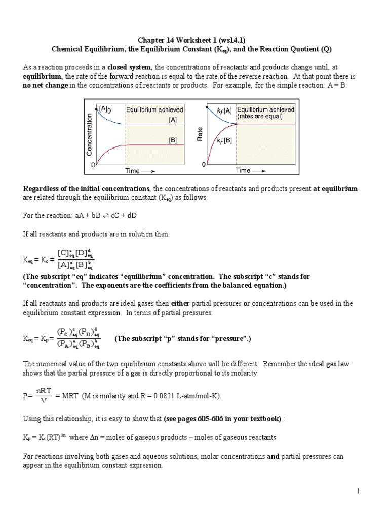 Reaction Reversibility Worksheet for 9th 12th Grade Lesson