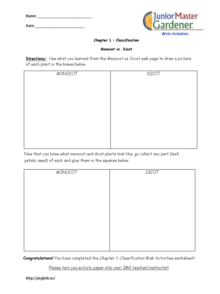 Comparing Monocots And Dicots Worksheet