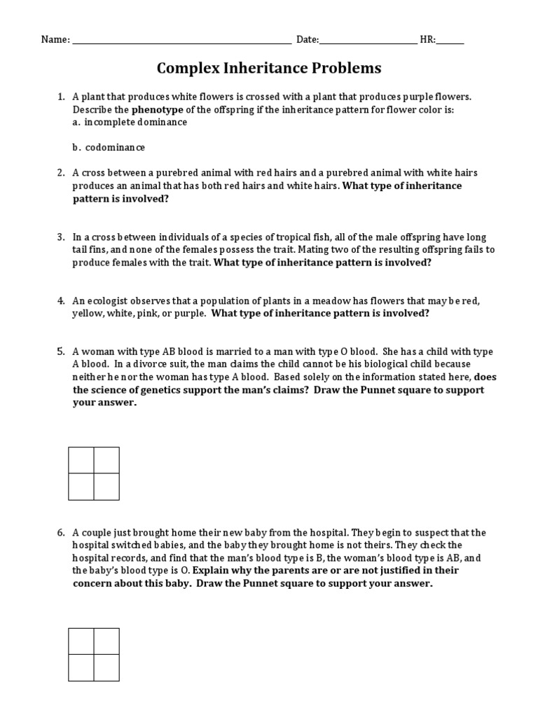 Complex Inheritance Patterns Worksheet