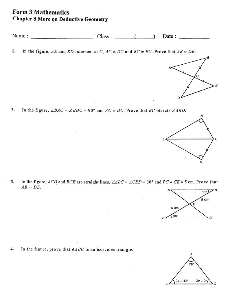 F3 Math Ch.8 Deductive Geometry Exercise Teaching Mathematics