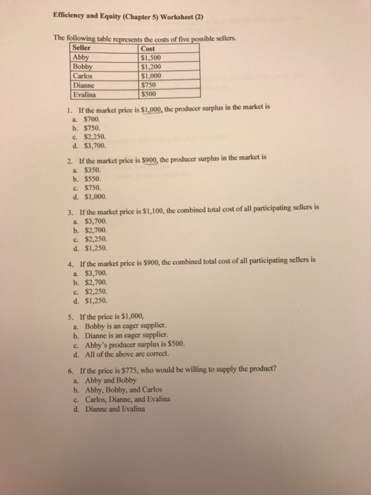 Solved Efficiency and Equity (Chapter 5) Worksheet (2) The