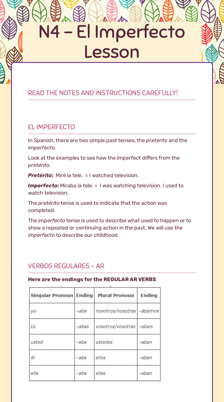 N4 El Imperfecto Lesson Interactive Worksheet by Linda Wyman Wizer.me