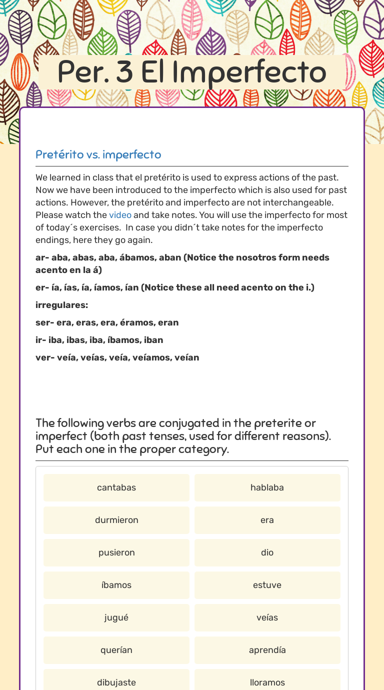 Per. 3 El Imperfecto Interactive Worksheet by Claudia Maravilla