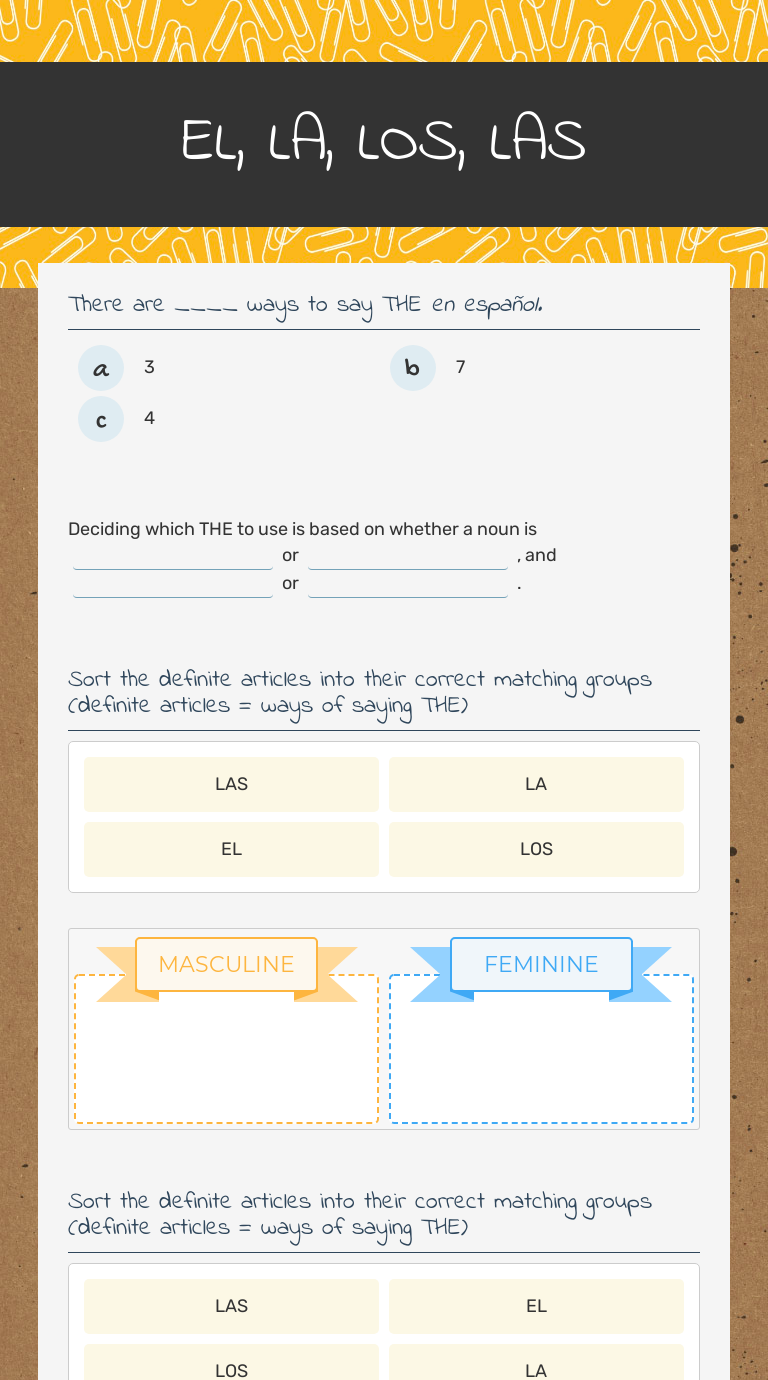 EL, LA, LOS, LAS Interactive Worksheet by Christopher Galindo Wizer.me