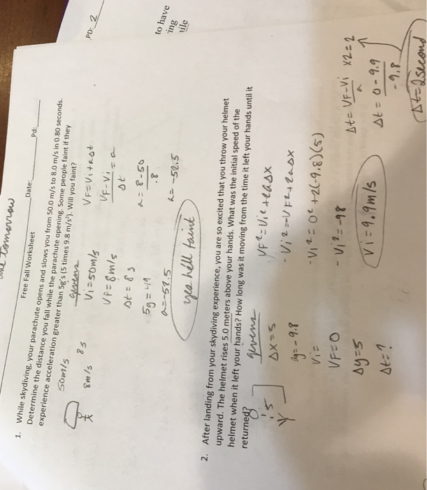 Solved Free Fall Problems Worksheet Physics Name Period ems,