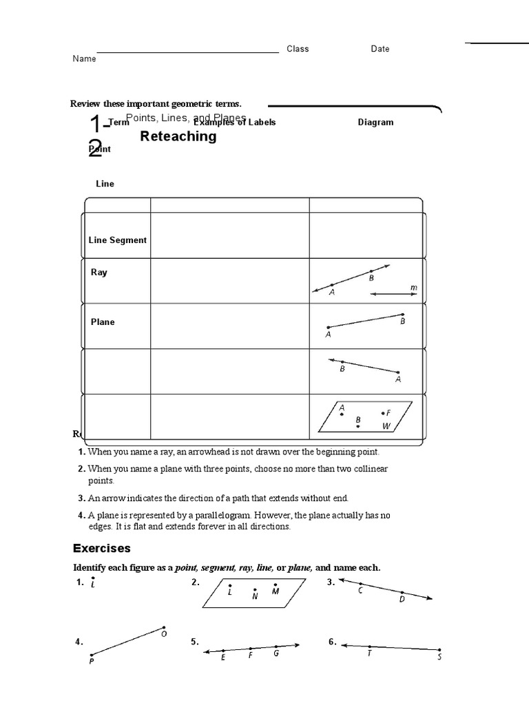 Geometry Worksheets Points Lines And Planes