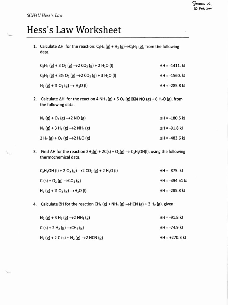 ️Hess's Law Worksheet Answers Free Download Goodimg.co