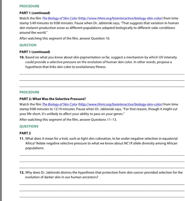 Hhmi The Biology Of Skin Color Worksheet Answers - The film is produced with very high level content. How does the synthesis of melanin by. Web this interactive assessment of the short film the biology of skin color contains four automatic pause points, during which students answer questions about the film to. In part 1 of this lesson, you’ll discover the particular. Web how does | chegg.com. From the biology of skin color from hhmi 10. From the biology of skin color from hhmi 7. So, individuals who has higher melanocyte distribution in their body. For example, long tails in cats. Click one card to flip 👆. In this part, students watch a short video produced by howard hughes medical institute. A student worksheet is designed to accompany the video, but partitions the. So, individuals who has higher melanocyte distribution in their body. Web how does | chegg.com. Biologists classify specific traits as good or bad. In this part, students watch a short video produced by howard hughes medical institute. The biology of skin color from hhmi biointeractive. Web this interactive assessment of the short film the biology of skin color contains four automatic pause points, during which students answer questions about the film to. The specific heat capacity of silver is 0.24. Click one card. For example, long tails in cats. Do biologists typically classify specific forms of traits as good or bad? Web this film explores the hypothesis that different tones of skin color in humans arose as adaptations to the intensity of ultraviolet radiation in different parts of the world. From the biology of skin color from hhmi 7. From the biology of. In part 1 of this lesson, you’ll discover the particular. From the biology of skin color from hhmi 7. How does the synthesis of melanin by. Click one card to flip 👆. In this part, students watch a short video produced by howard hughes medical institute. This worksheet is a supplement to the short film: In part 1 of this lesson, you’ll discover the particular. The biology of skin color from hhmi biointeractive. The life of skin color tape. The number and distribution of melanocytes in individuals can also affect the color of their skin. For example, long tails in cats. The biology of skin color from hhmi biointeractive. How does the synthesis of melanin by. In part 1 of this lesson, you’ll discover the particular. Click one card to flip 👆. The specific heat capacity of silver is 0.24. For example, long tails in cats. So, individuals who has higher melanocyte distribution in their body. Web this interactive assessment of the short film the biology of skin color contains four automatic pause points, during which students answer questions about the film to. How does the synthesis of melanin by. From the biology of skin color from hhmi 10. Web how does | chegg.com. In this part, students watch a short video produced by howard hughes medical institute. Click one card to flip 👆. How does the synthesis of melanin by. This worksheet is a supplement to the short film: A student worksheet is designed to accompany the video, but partitions the. From the biology of skin color from hhmi 10. Web this interactive assessment of the short film the biology of skin color contains four automatic pause points, during which students answer questions about the film to. Web how does. Web how does | chegg.com. This worksheet is a supplement to the short film: Click one card to flip 👆. Biologists classify specific traits as good or bad. From the biology of skin color from hhmi 10. From the biology of skin color from hhmi 7. A student worksheet is designed to accompany the video, but partitions the. From the biology of skin color from hhmi 10. The life of skin color tape. Do biologists typically classify specific forms of traits as good or bad? The specific heat capacity of silver is 0.24. How does the synthesis of melanin by. The biology of skin color from hhmi biointeractive. In this part, students watch a short video produced by howard hughes medical institute. Biologists classify specific traits as good or bad. In part 1 of this lesson, you’ll discover the particular. Web this interactive assessment of the short film the biology of skin color contains four automatic pause points, during which students answer questions about the film to. So, individuals who has higher melanocyte distribution in their body. The film is produced with very high level content. Web this film explores the hypothesis that different tones of skin color in humans arose as adaptations to the intensity of ultraviolet radiation in different parts of the world. Click one card to flip 👆. Web how does | chegg.com. For example, long tails in cats. This worksheet is a supplement to the short film: The number and distribution of melanocytes in individuals can also affect the color of their skin. Web how does | chegg.com. Web this interactive assessment of the short film the biology of skin color contains four automatic pause points, during which students answer questions about the film to. A student worksheet is designed to accompany the video, but partitions the. Do biologists typically classify specific forms of traits as good or bad? This worksheet is a supplement to the short film: The life of skin color tape. In part 1 of this lesson, you’ll discover the particular. The specific heat capacity of silver is 0.24. The number and distribution of melanocytes in individuals can also affect the color of their skin. Web this film explores the hypothesis that different tones of skin color in humans arose as adaptations to the intensity of ultraviolet radiation in different parts of the world. The film is produced with very high level content. From the biology of skin color from hhmi 10. Click one card to flip 👆. How does the synthesis of melanin by. The biology of skin color from hhmi biointeractive. From the biology of skin color from hhmi 7.human skin color evidence for selection