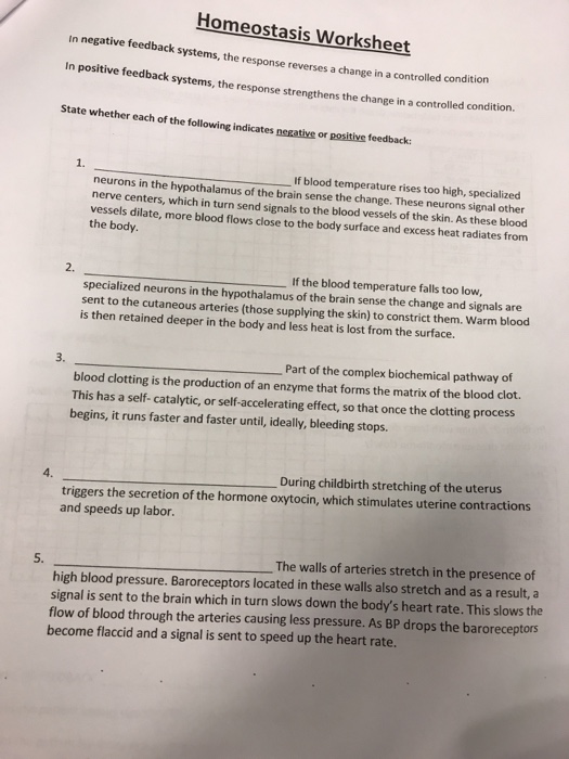 Homeostasis Worksheet Answer Key