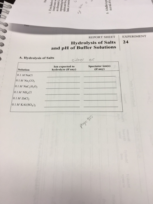 Solved Part II. Hydrolysis of Salt Solutions Salt Salt Net