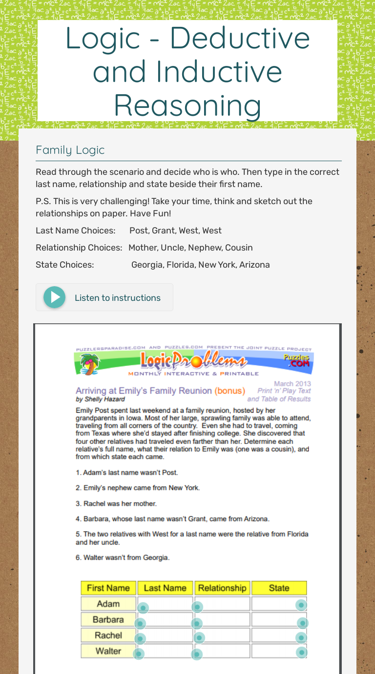 deductive reasoning activity worksheet by beverly brown tpt deductive