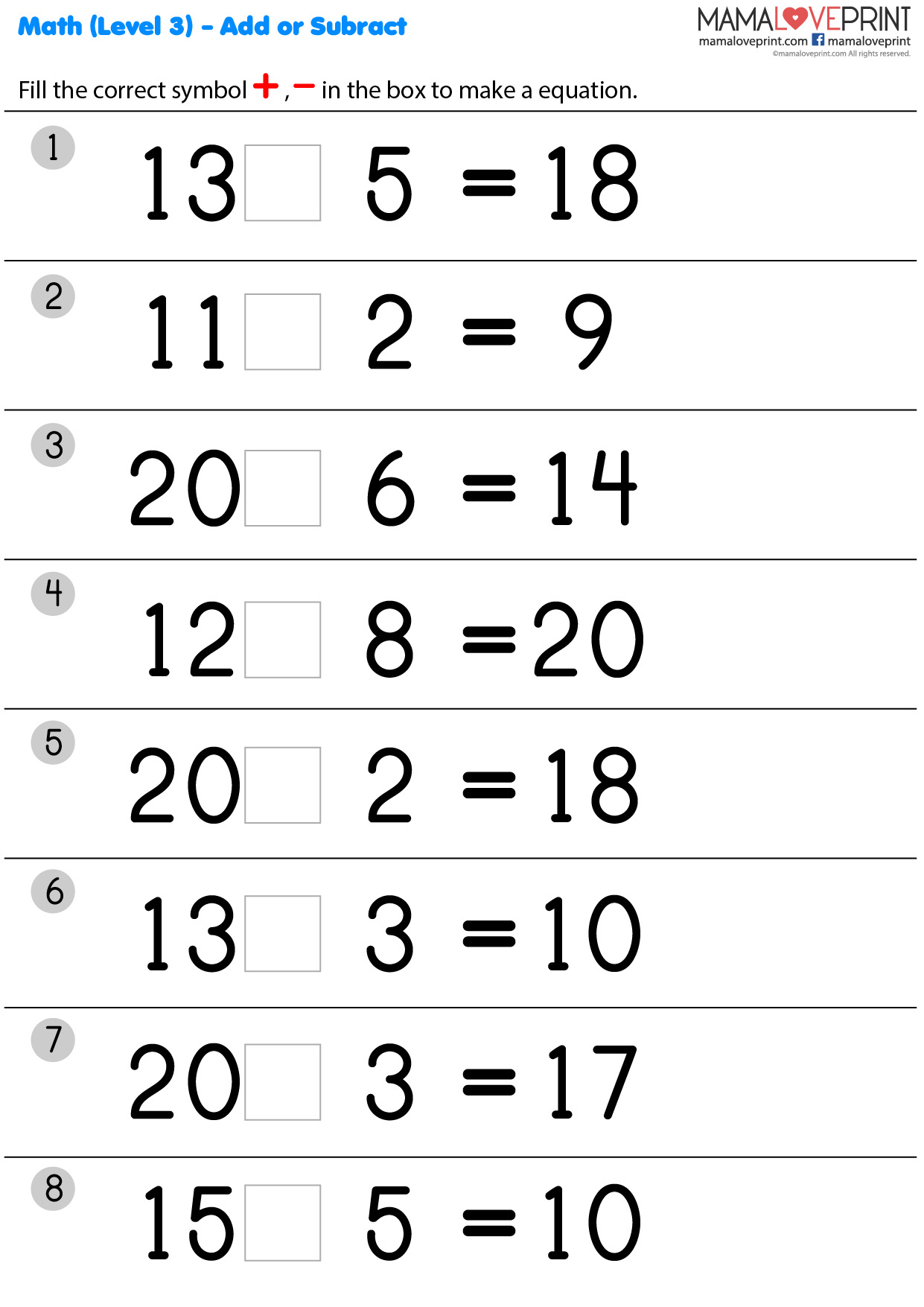 MamaLovePrint 自製工作紙 K3 加數還是減數? Add or Subtract Math Worksheets