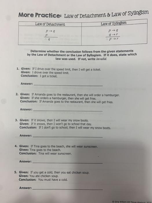 Law Of Detachment And Law Of Syllogism Worksheet With Answers