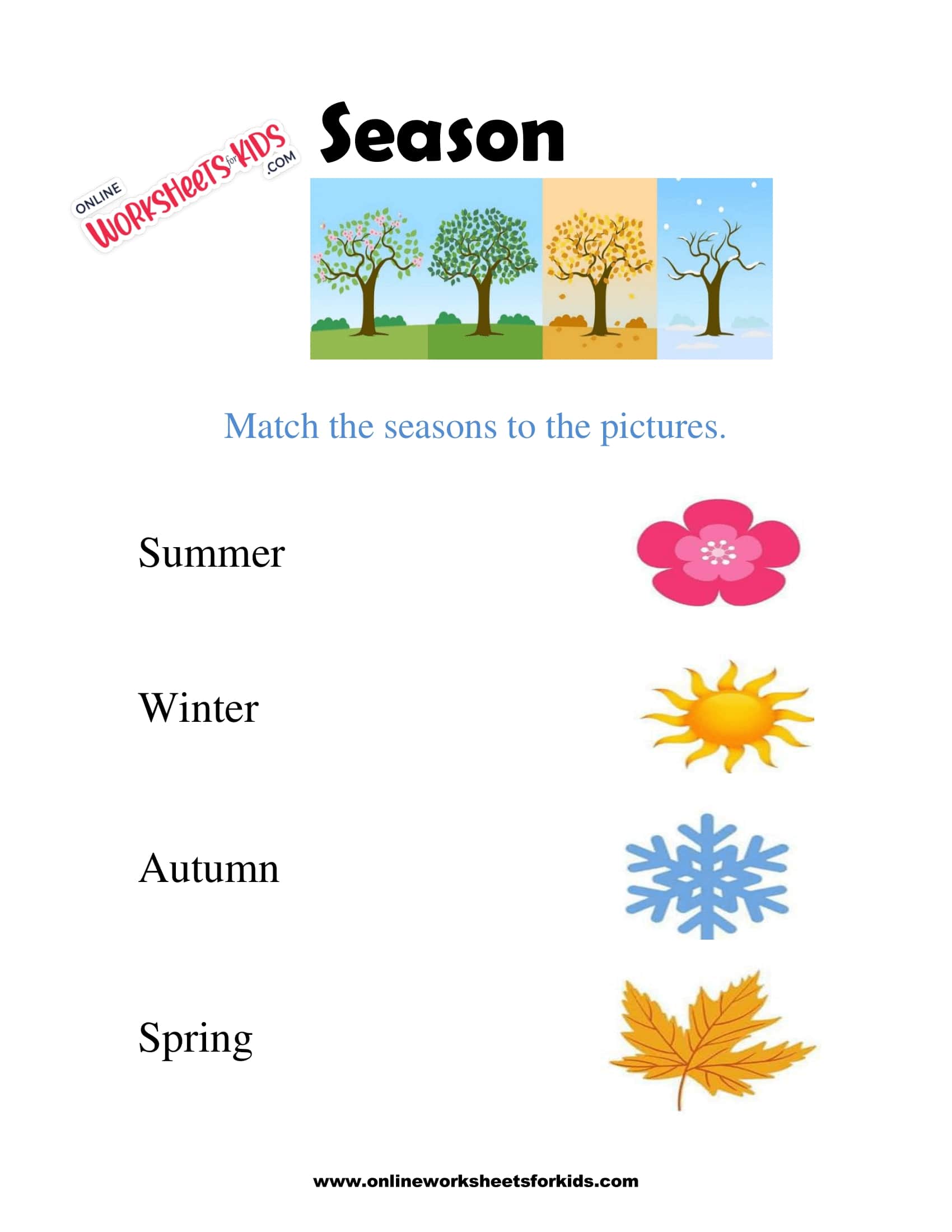 Match the seasons correctly worksheet