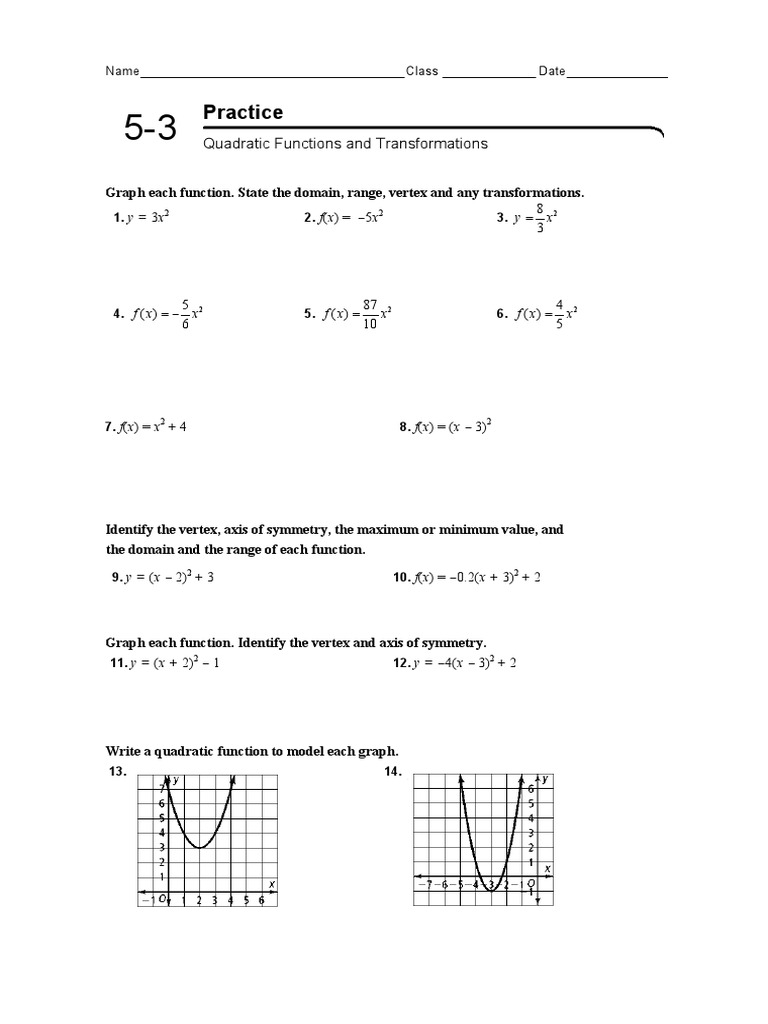 Algebra II 53 Practice Worksheet