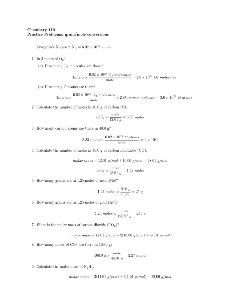 Mole To Particle Conversion Worksheet