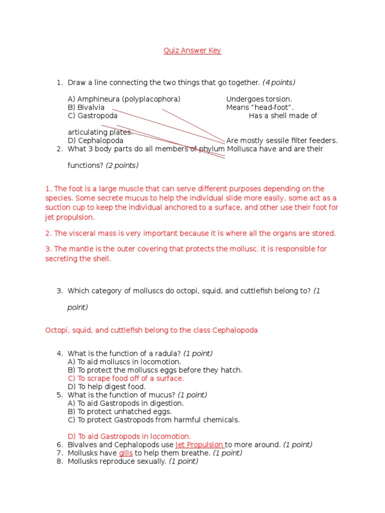 Unit 6 Mollusks Test Review Answer Key