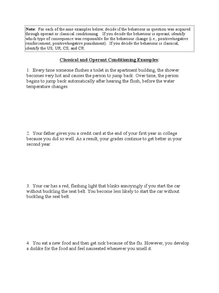 Operant Conditioning Worksheet For Each Of The Following Operant Conditioning Situations, Identify Whether This Is An.