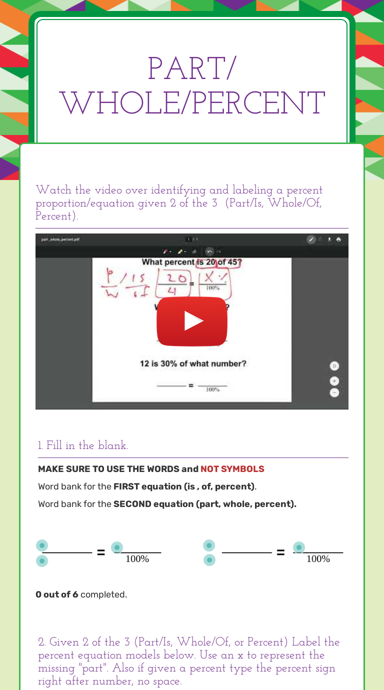 Part/ whole/percent Interactive Worksheet by SusanAmber Boyington