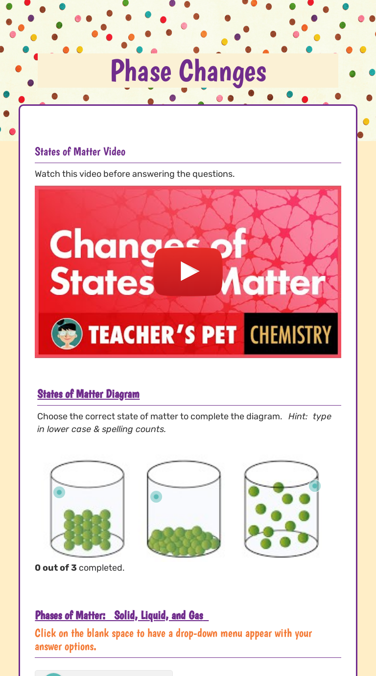 Phase Changes Interactive Worksheet by Christopher Sheffer Wizer.me