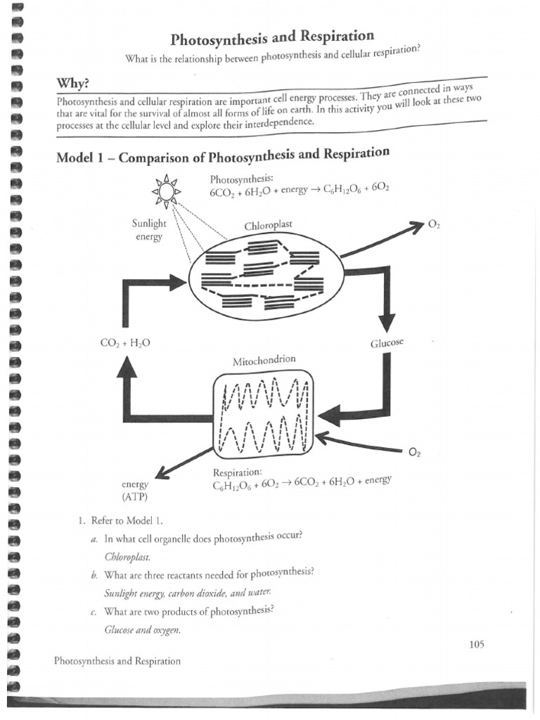 Photosynthesis And Cellular Respiration Worksheet High School Answers