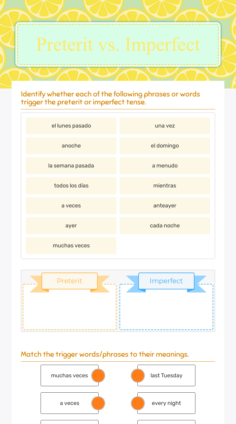 Preterit vs. Imperfect Interactive Worksheet by Michayla Mowrey