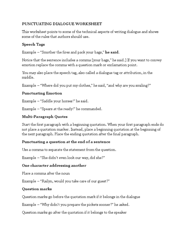 dialogue punctuation worksheets