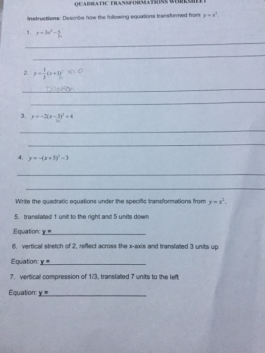 Solved WORKSHEET QUADRATIC TRANSFORMATIONS Instructions