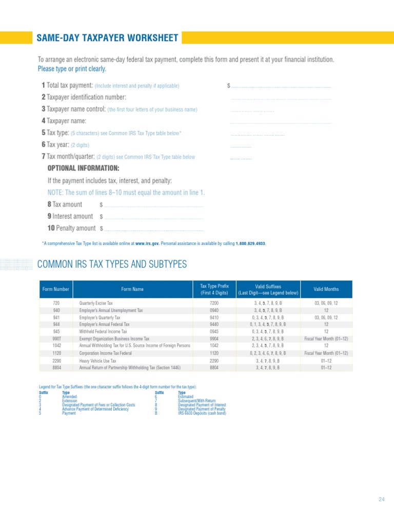 Irs same day taxpayer worksheet instructions