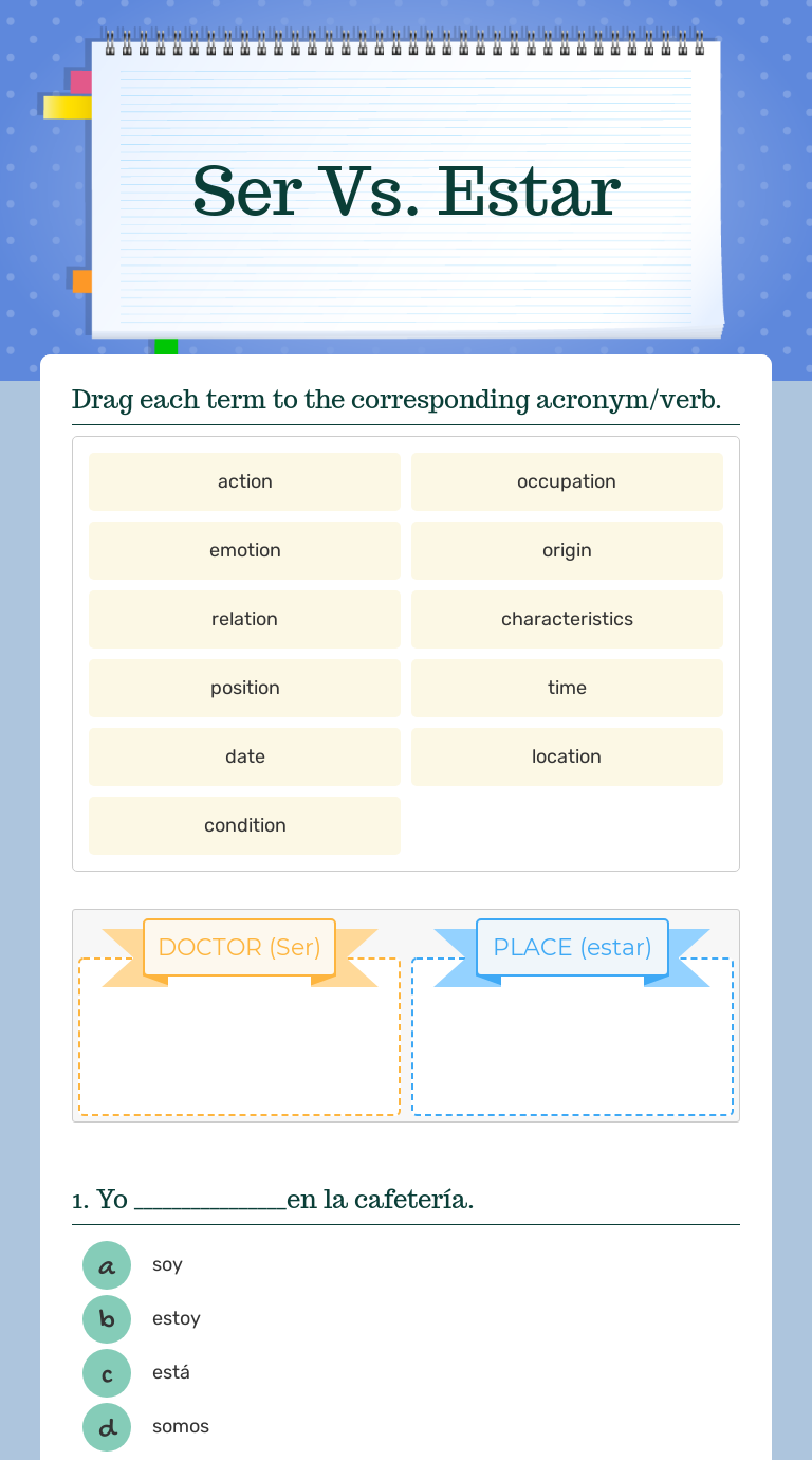 Ser Vs. Estar Interactive Worksheet by MAJOR, ERIKA Wizer.me