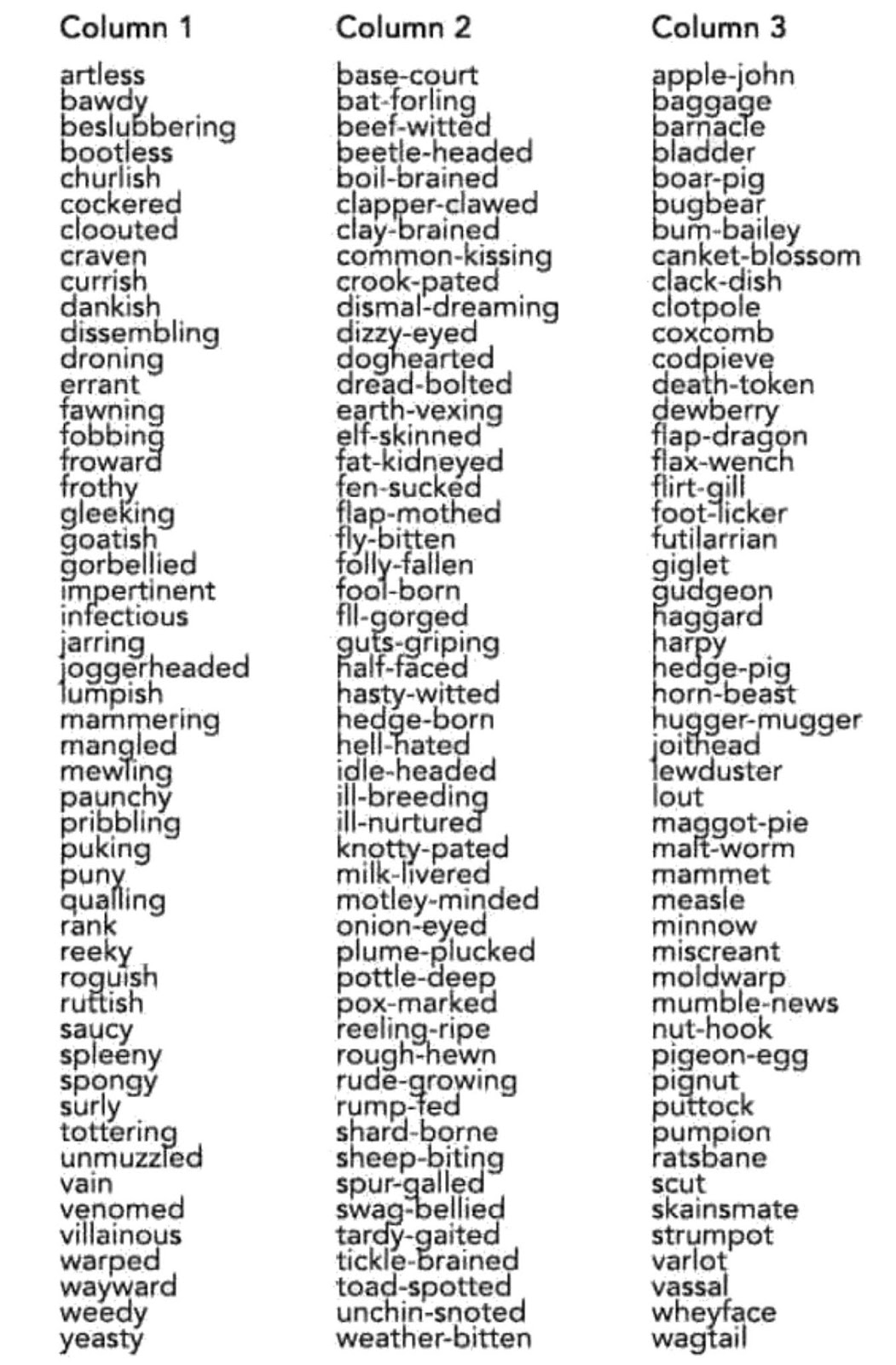 Make Your Own Shakespearean Insult! Insulting, Bard, Evocation