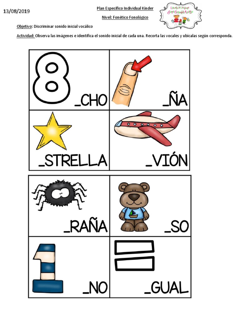 Plan Específico Individual Kínder Sonido Inicial Vocálico