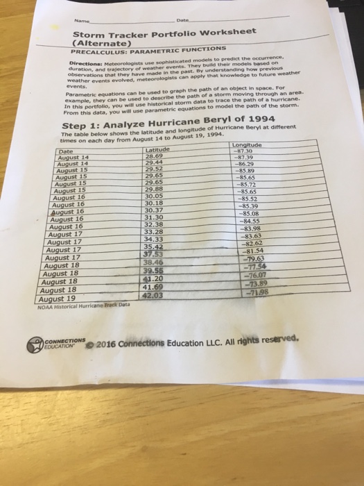 Solved Storm Tracker Portfolio Worksheet PRECALCULUS