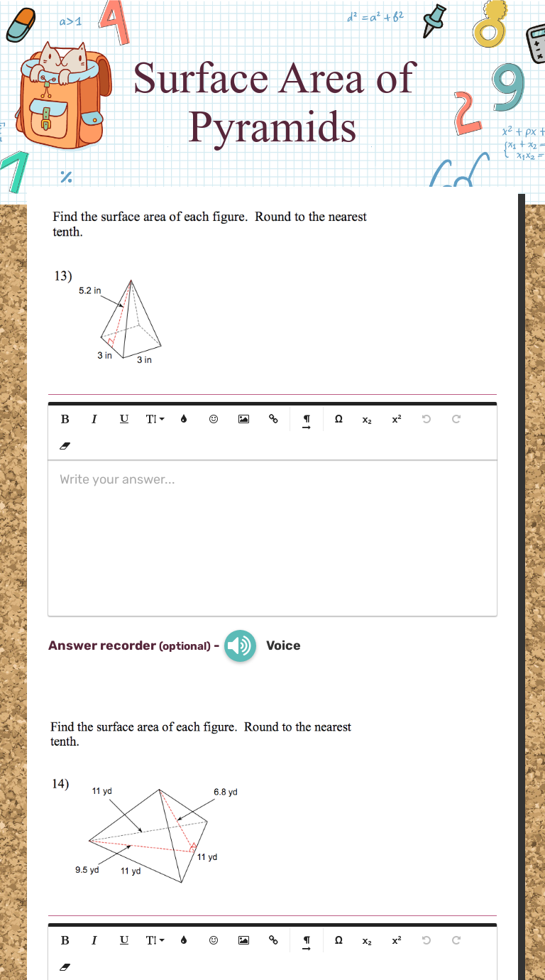 Surface Area Pyramid Worksheet