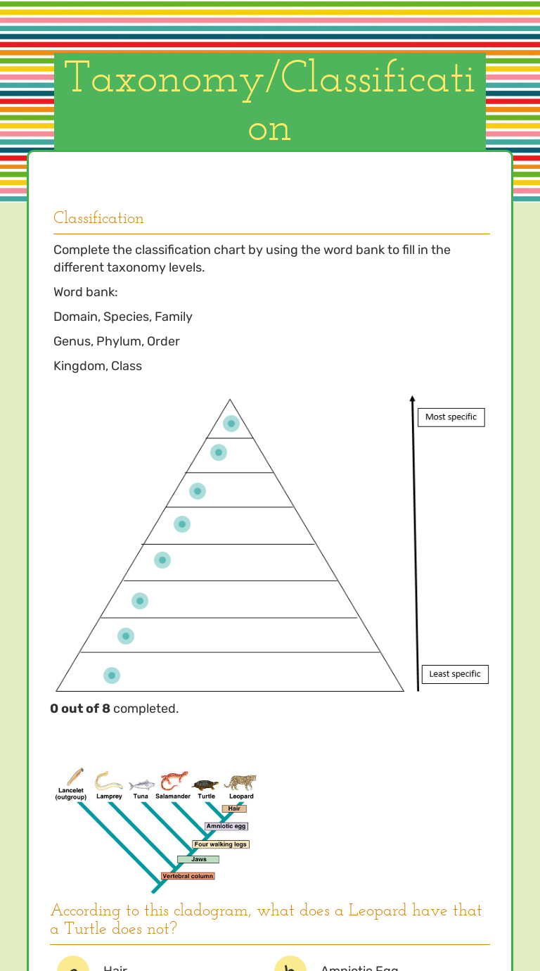 Taxonomy/Classification Interactive Worksheet by Kourtney Wood Wizer.me