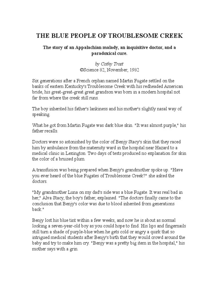 Web The Blue People Of Troublesome Creek (Answer Sheet) In 1820, A French Orphan Named Martin Fugate Settled On The Banks Of Eastern Kentucky Near Troublesome.