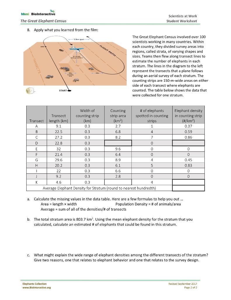 Hhmi Biolnteractive The Great Elephant Census Scientists At Work Student Worksheet 8.
