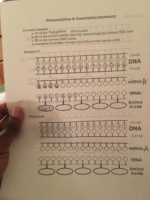 transcription and translation worksheet key