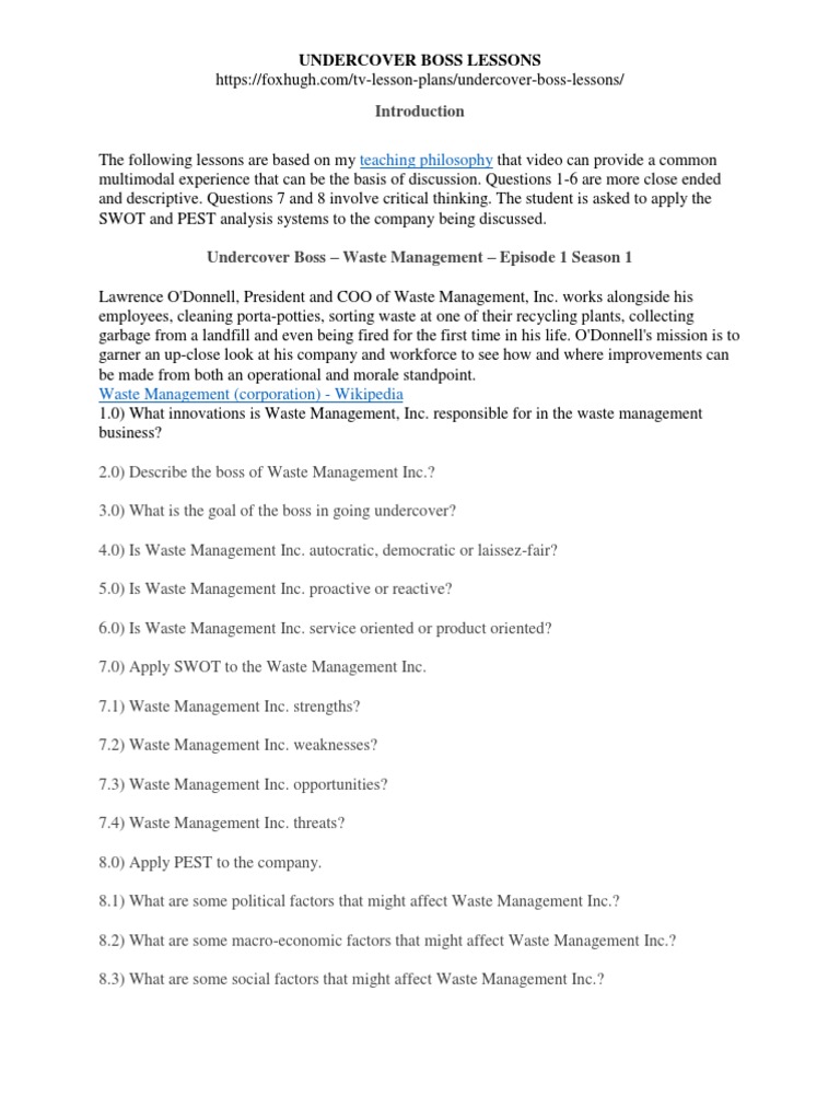 This Worksheet And Undercover Boss Episode Can Cover A Variety.