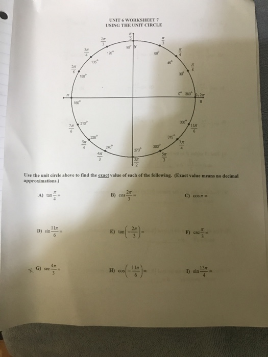 Unit 6 Worksheet 7 Using The Unit Circle